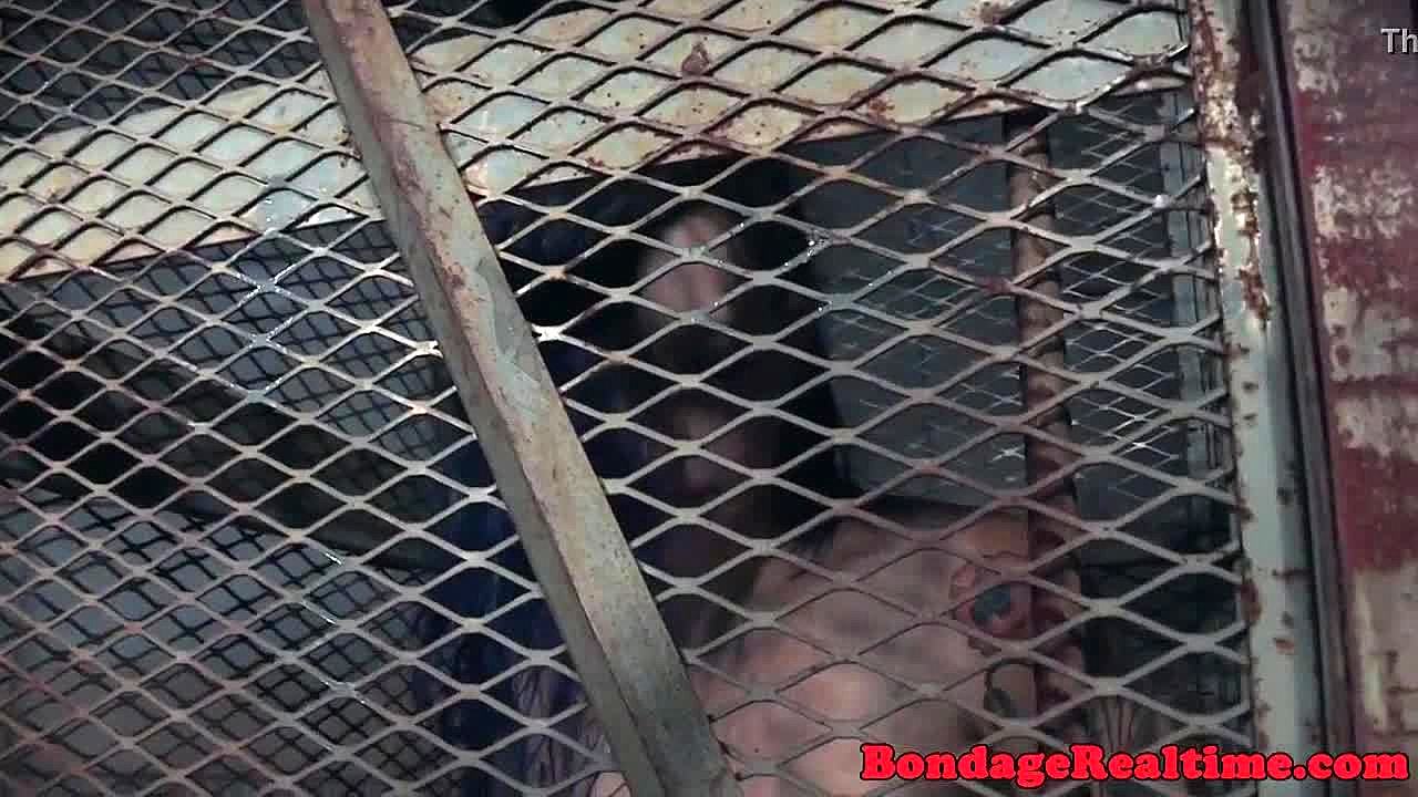 Russa submissa amarrada pra sessão de punição ao ar livre